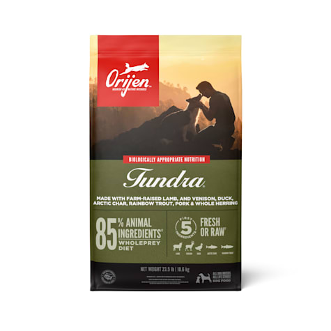 Size 25 lb orijen s biologically appropriate tundra dog food is a unique delicious and nourishing recipe inspired by the natural diet of whole prey animals.