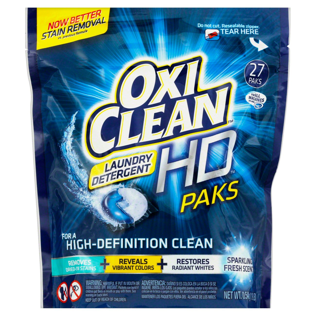 Oxi clean hd laundry detergent paks he machine compatible works in all machines sparkling fresh scent 18 count paks pods per package pack of 2 3 9 out of 5 stars 3 10 50 10.