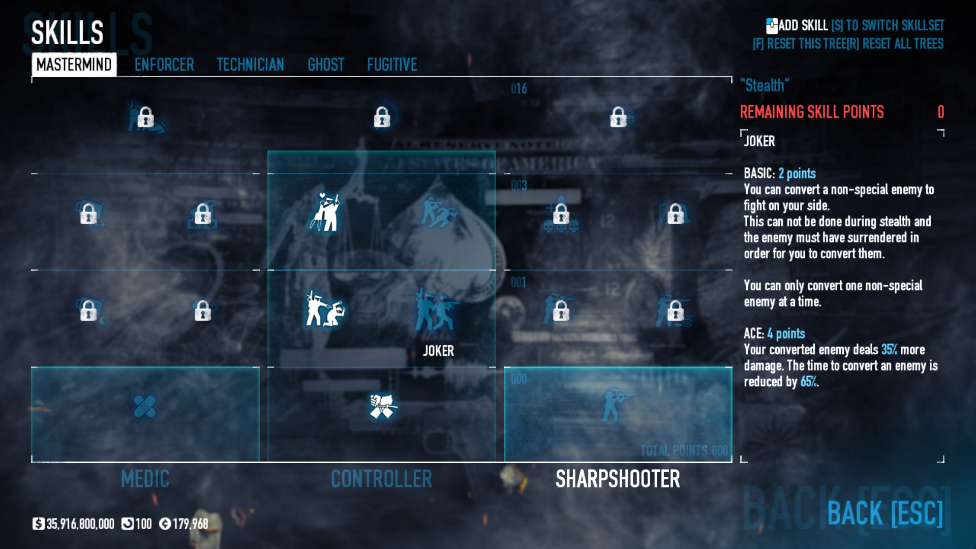 Complete skill tree perk deck overhaul.